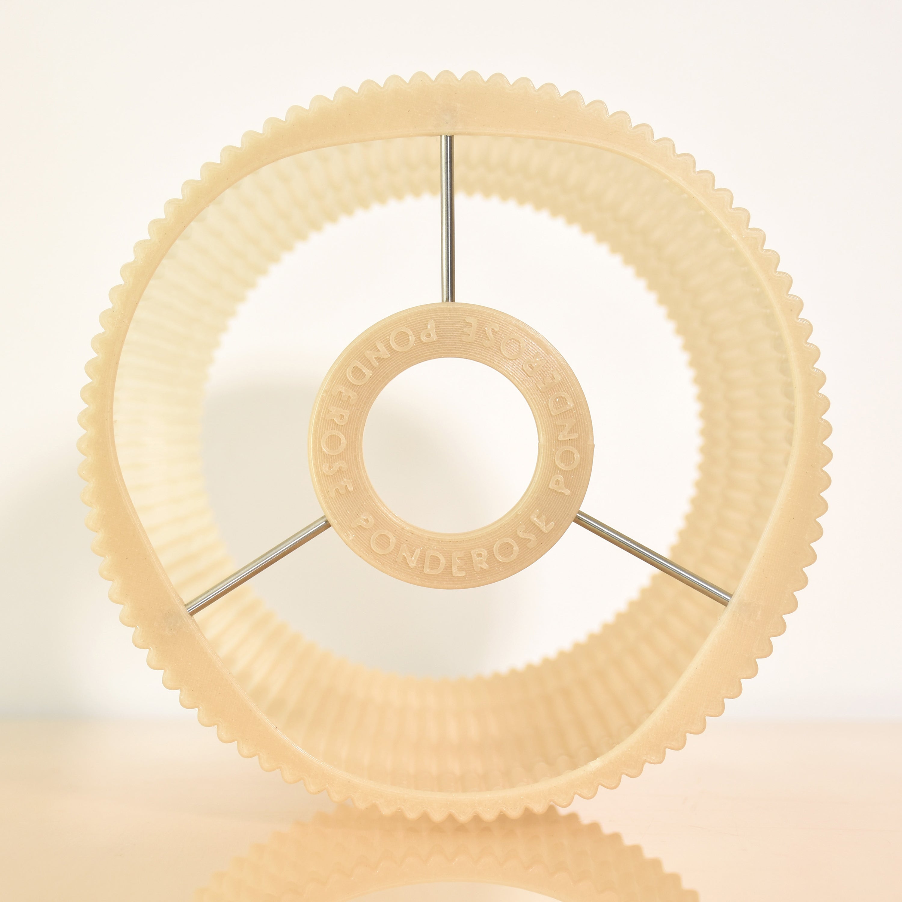 This lamp shade arrived quickly and in perfect condition. I am very excited by its apparent quality, beauty, and uniqueness. I'd had a difficult time finding the right shade for my needs and this is now perfect! I have learned how difficult it can be making and using 3D printers but not for Ponderose Design! There are no snags, no uneven printing- just a wonderfully creative and unique piece for my apartment! Thank You!