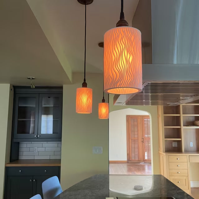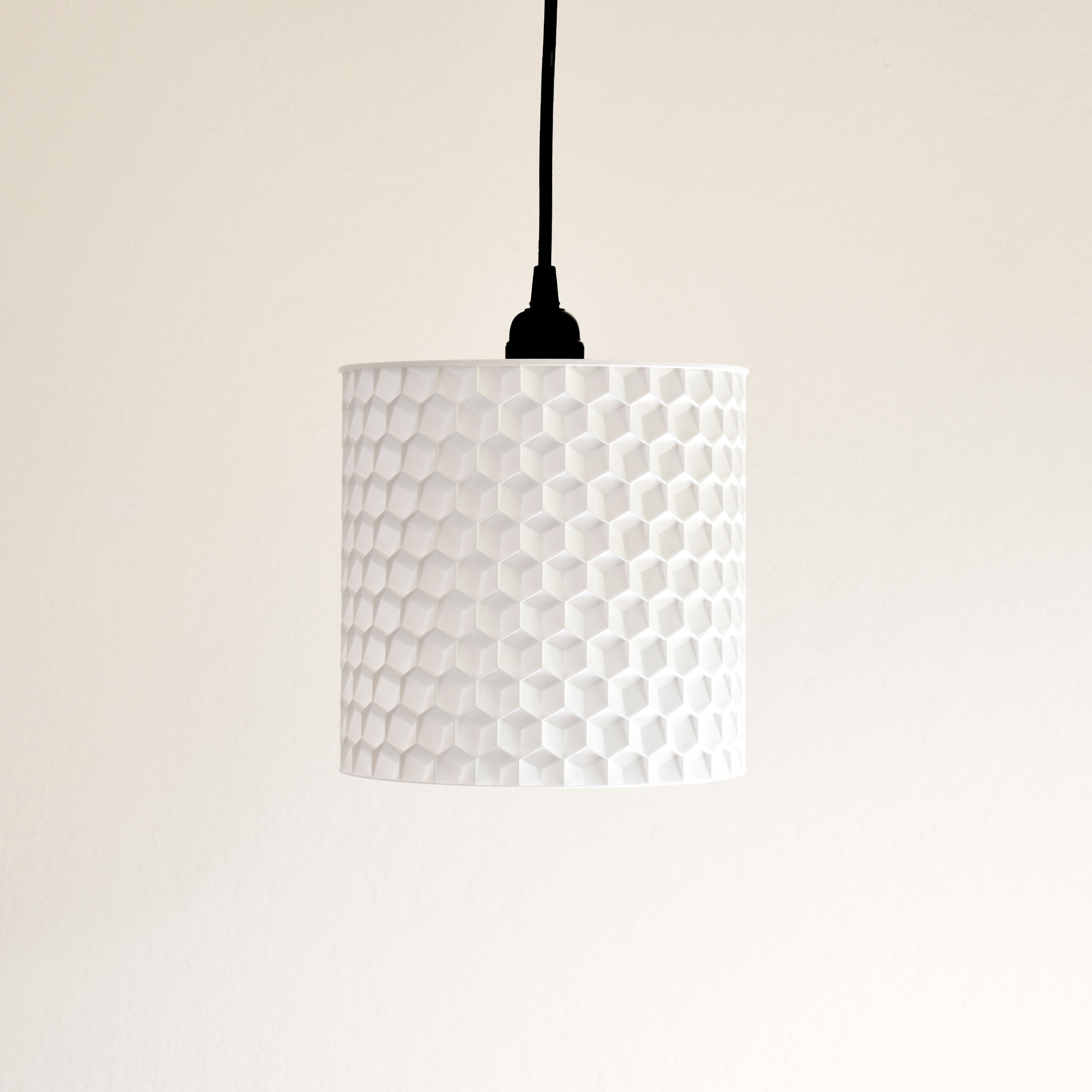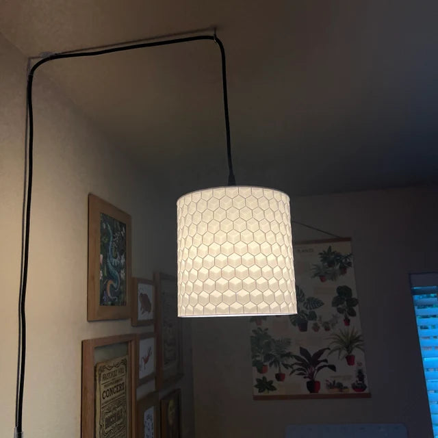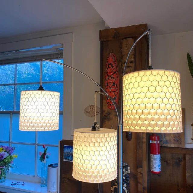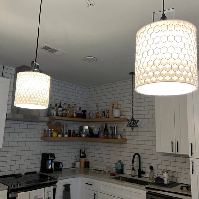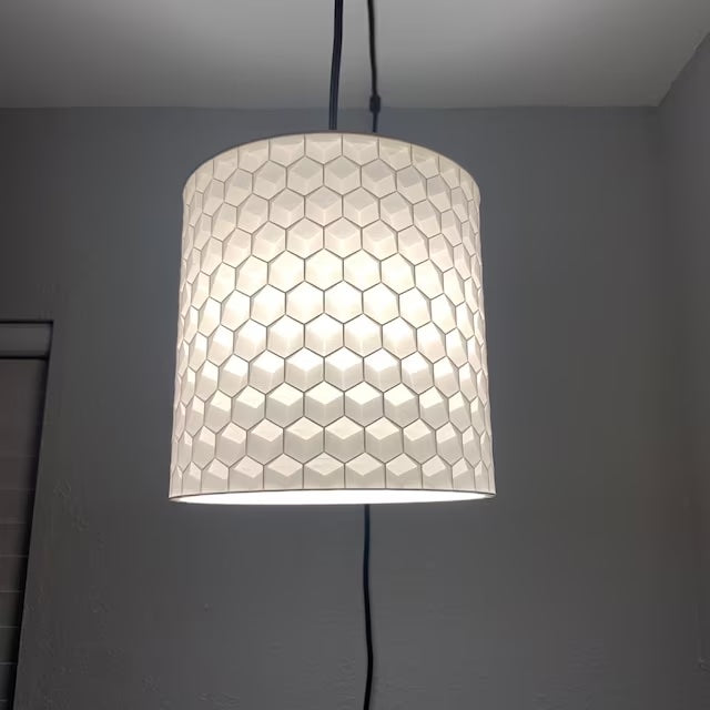 The pendant shade looks so great! Depending on the angle of viewing the pattern looks like either honeycomb or stacked cubes. Couldn’t be happier with my purchase and might end up slowly swapping out some other shades to create a more cohesive lighting scheme. Thanks again!!! (Support your independent creators y’all!)