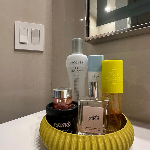 Absolutely gorgeous tray! It brightened up my whole bathroom instantly. Super quick shipping, amazing quality, 12/10 would recommend!